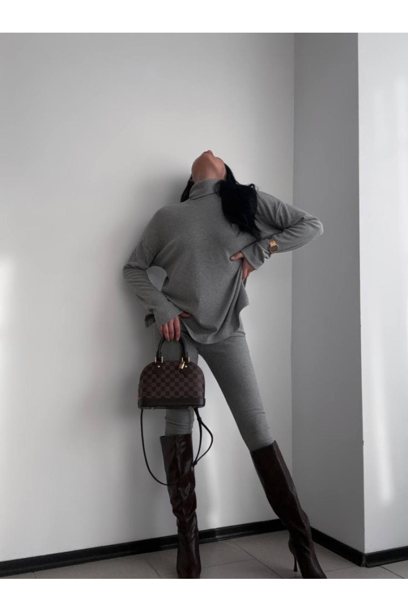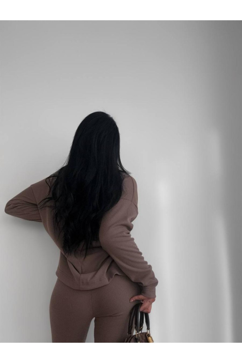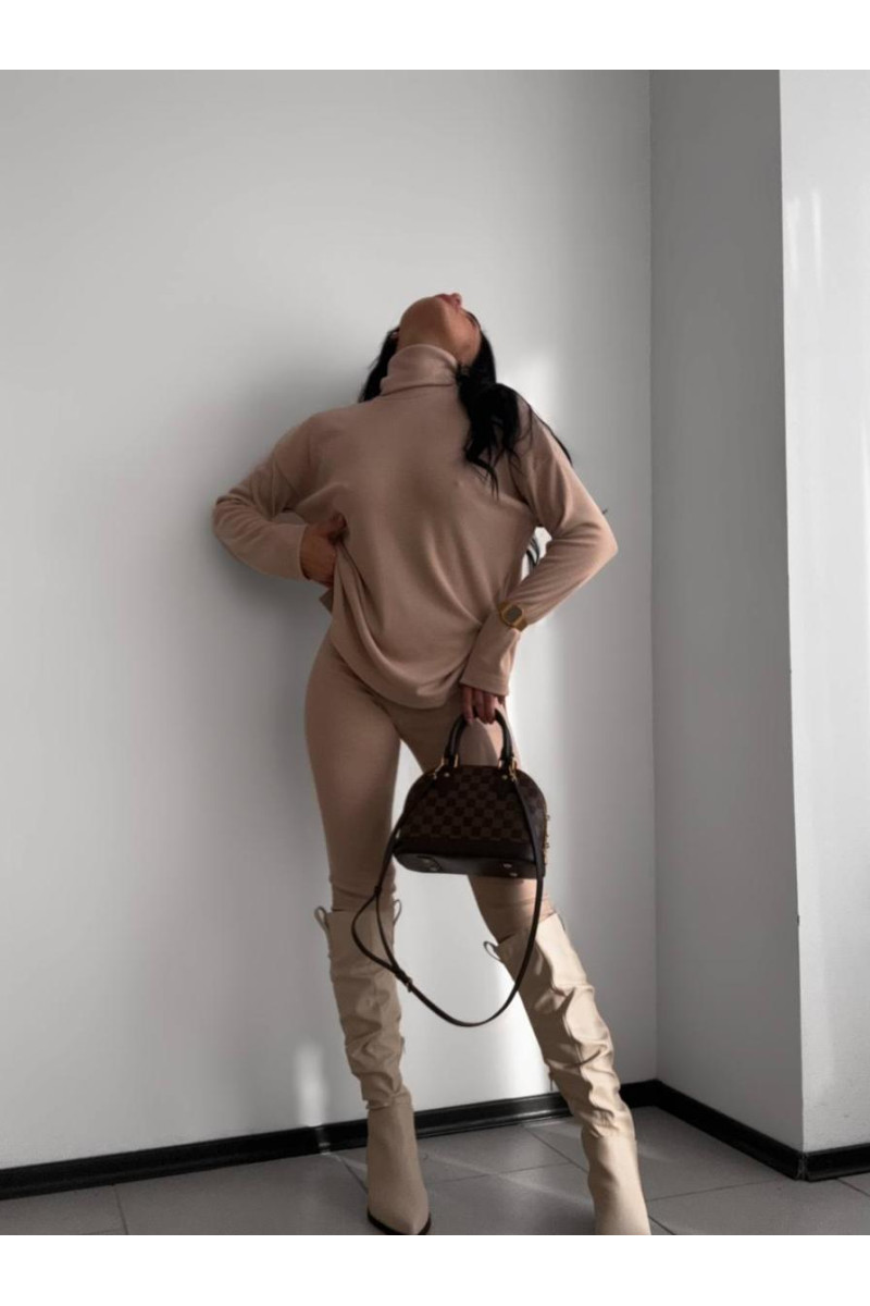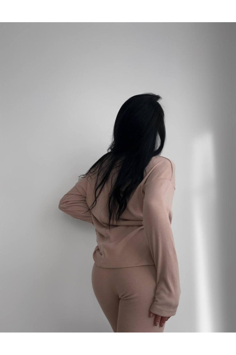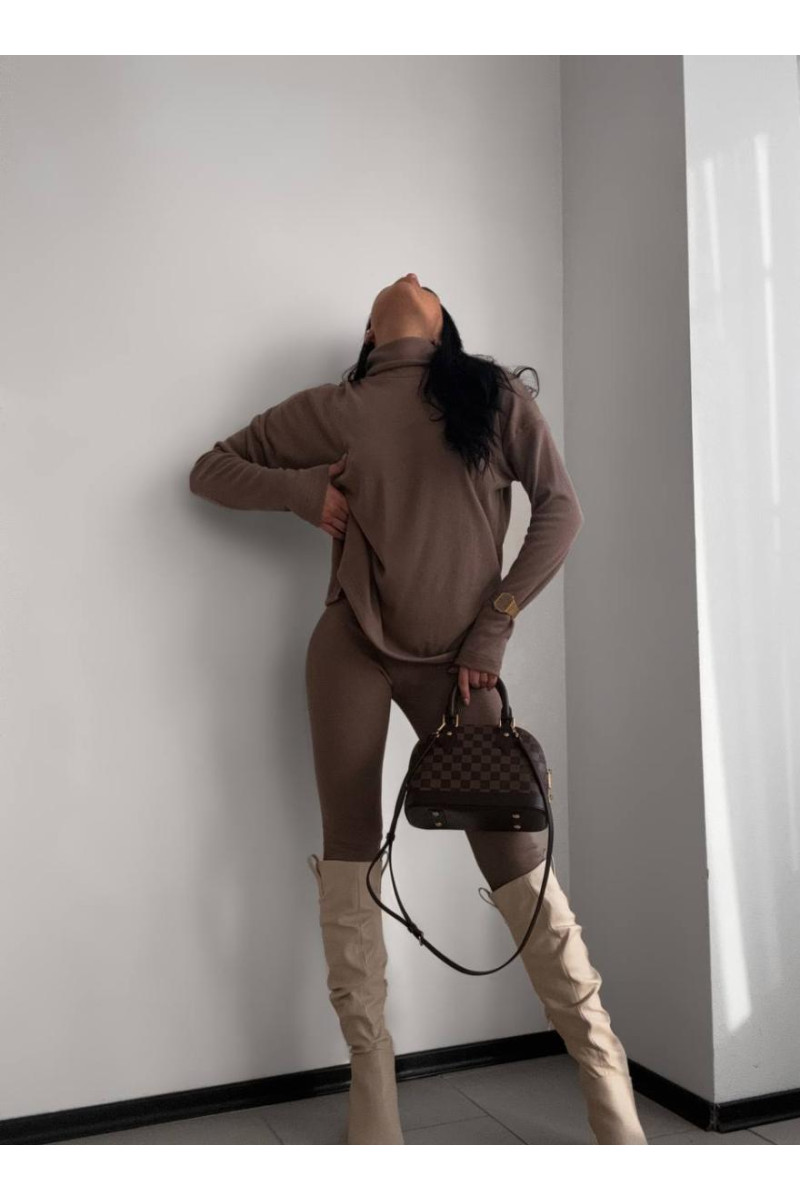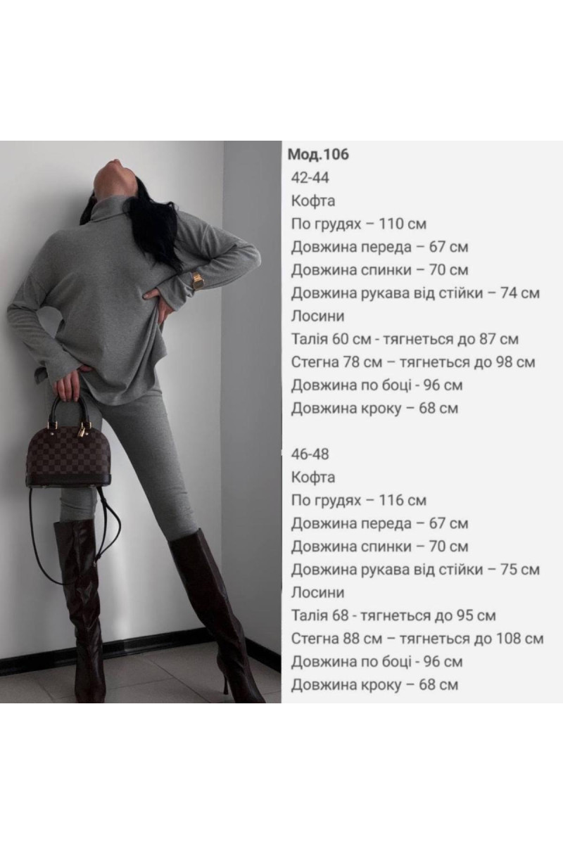 Опис: Костюм кофта + лосини з приємної до тіла тканини — рубчік з начосом.Кофта з комфортним коміром-стійкою, по боках розрізи. Лосини з високою посадкою без бічних швів, на талії гумка.