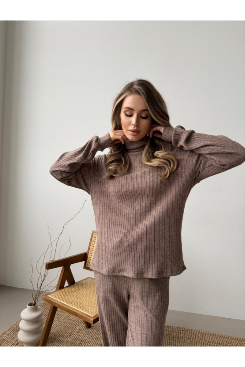 Прогулянковий костюм в’язка модель – 733-5433 Матеріал: турецька вʼязка (склад 60% віскоза, 35% поліамід, 5% еластан) Дуже м’яка і приємна на дотик тканина. Розміри: 42-44, 46-48 Розміри: 50-52, 54-56 — Кольори: чорний, мокко, сірий, молочний ВИМІРИ: 42-44: Кофта ОГ-110см, ОС-110см, довжина – 65см, рукав по внутр.шву — 54см Штани ОТ-66-100см, ОС-102см Довжина — 108см, довжина по внутр.шву — 76см 46-48: Кофта ОГ-114см, ОС-114см, довжина – 65см, рукав по внутр.шву — 54см Штани ОТ-70-104см, ОС-106см Довжина — 108см, довжина по внутр.шву — 76см 50-52: Кофта ОГ-128см, ОС-128см, довжина – 68см, рукав по внутр.шву — 54см Штани ОТ-74-110см, ОС-108см Довжина — 108см, довжина по внутр.шву — 76см 54-56: Кофта ОГ-136см, ОС-136см, довжина – 68см, рукав по внутр.шву — 54см Штани ОТ-80-116см, ОС-116см Довжина — 108см, довжина по внутр.шву — 76см
