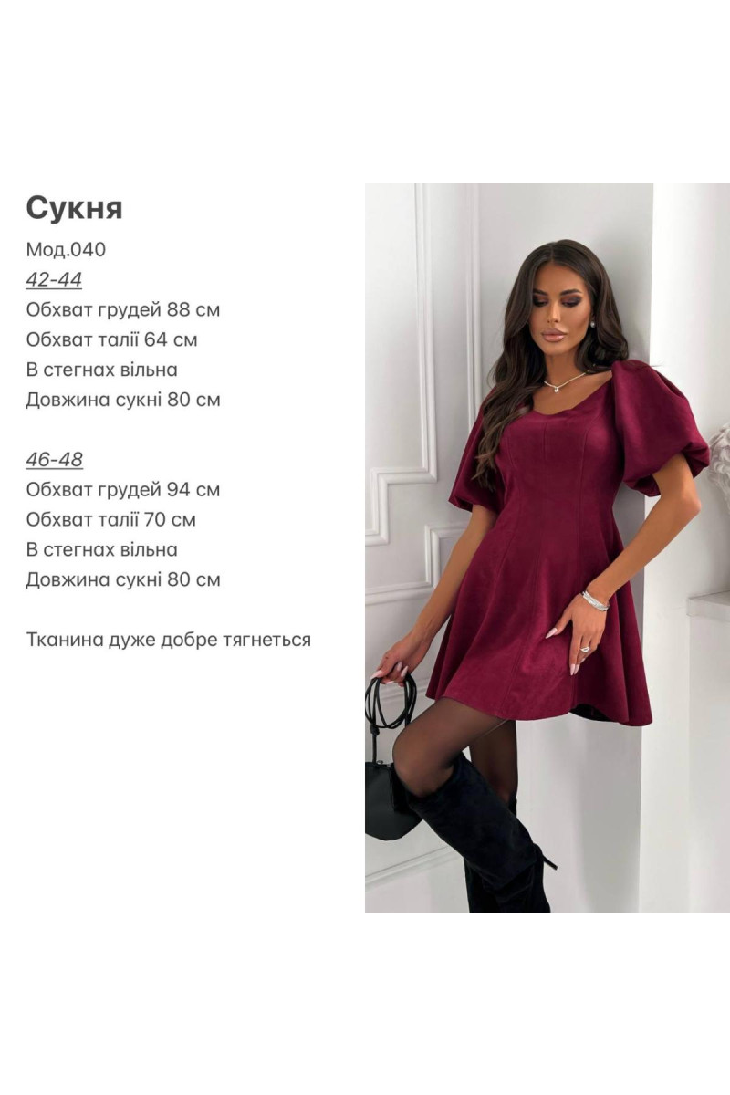 Сукня Мод. Кольори: чорний, бордо,мокко Розміри: 42-44, 46-48 Тканина: замш на дайвінгу Сукня міні, що не залишить тебе без уваги Ідеально підкреслює фігуру