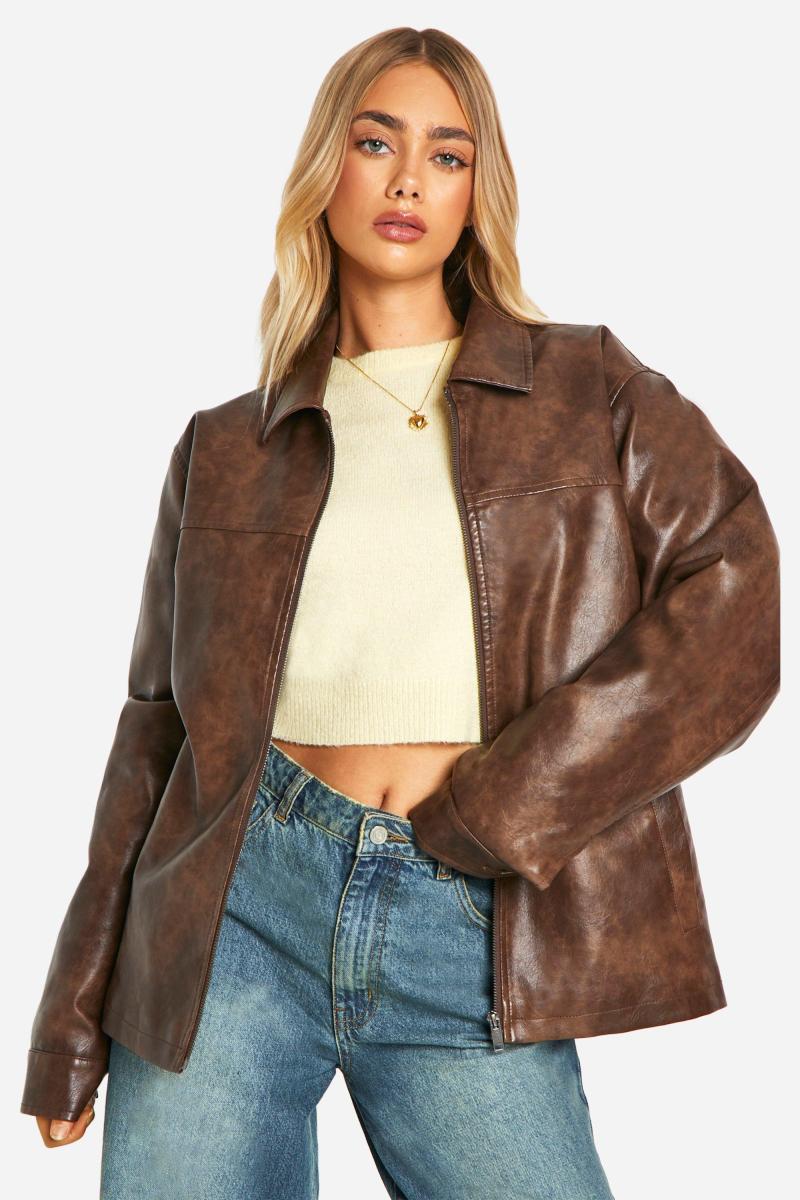 Вінтажна куртка зі штучної шкіри на блискавці