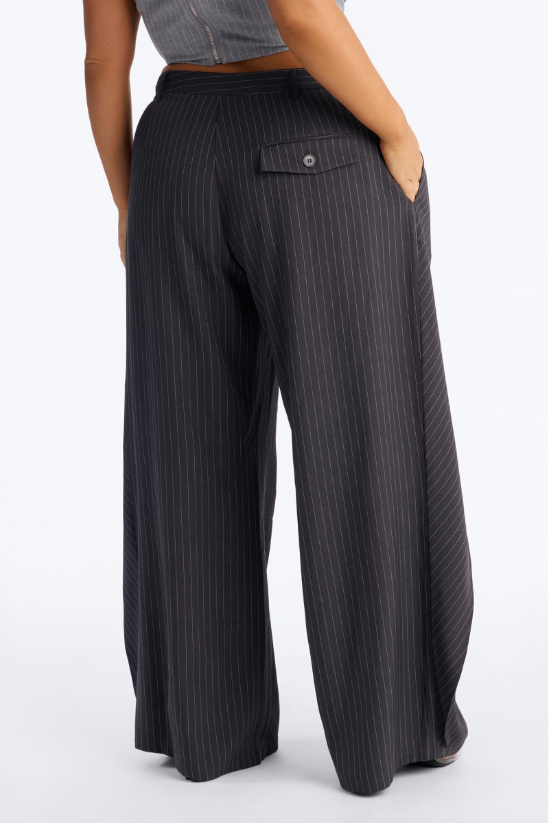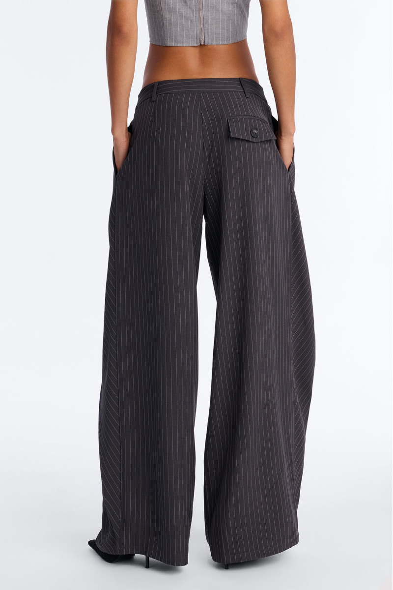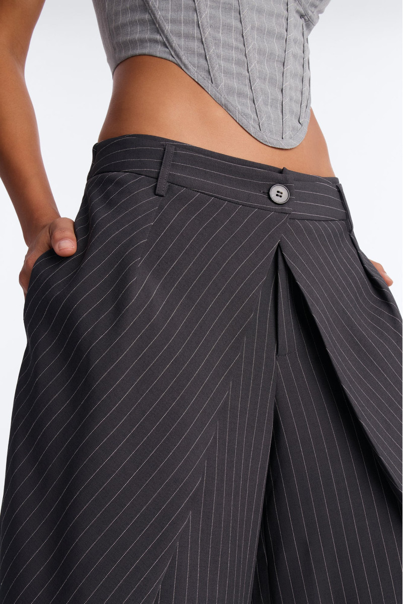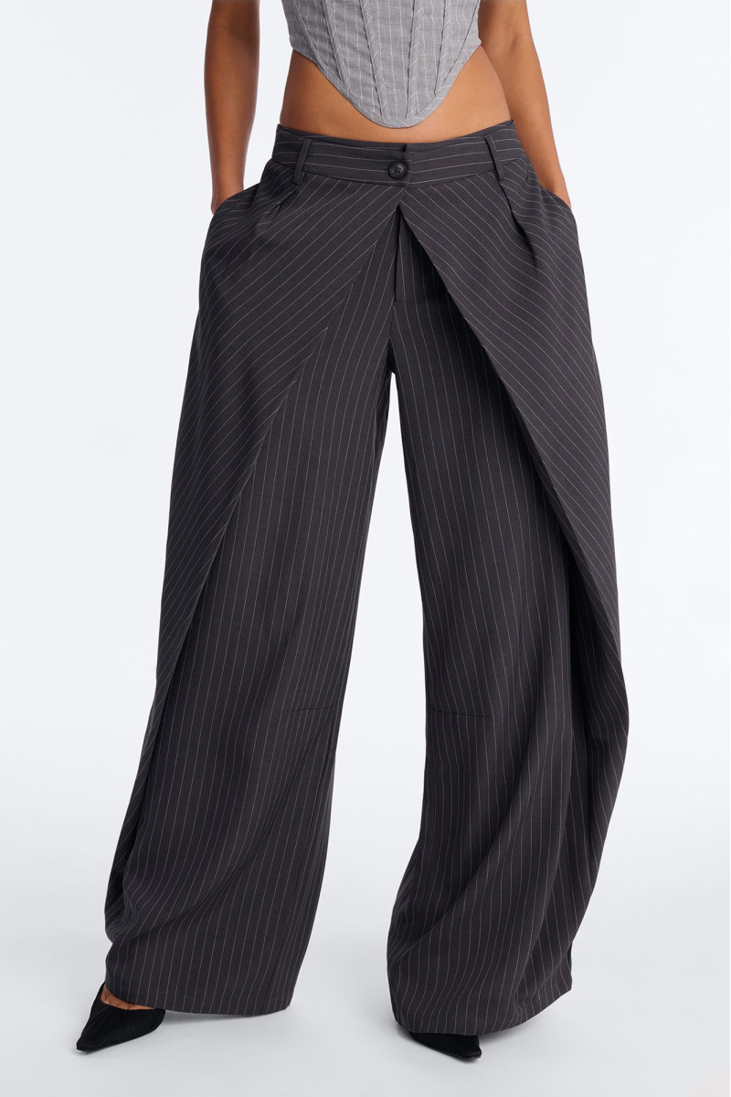 Штани із завищеною талією та широкими штанинами, що підкреслюють фігуру. Дизайн із запахом спереду додає нотку грайливості та елегантності. Довжина 33 дюйми ідеально доповнює образ, створюючи плавні лінії.