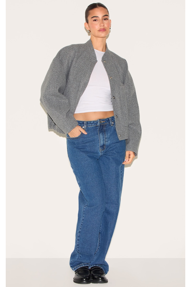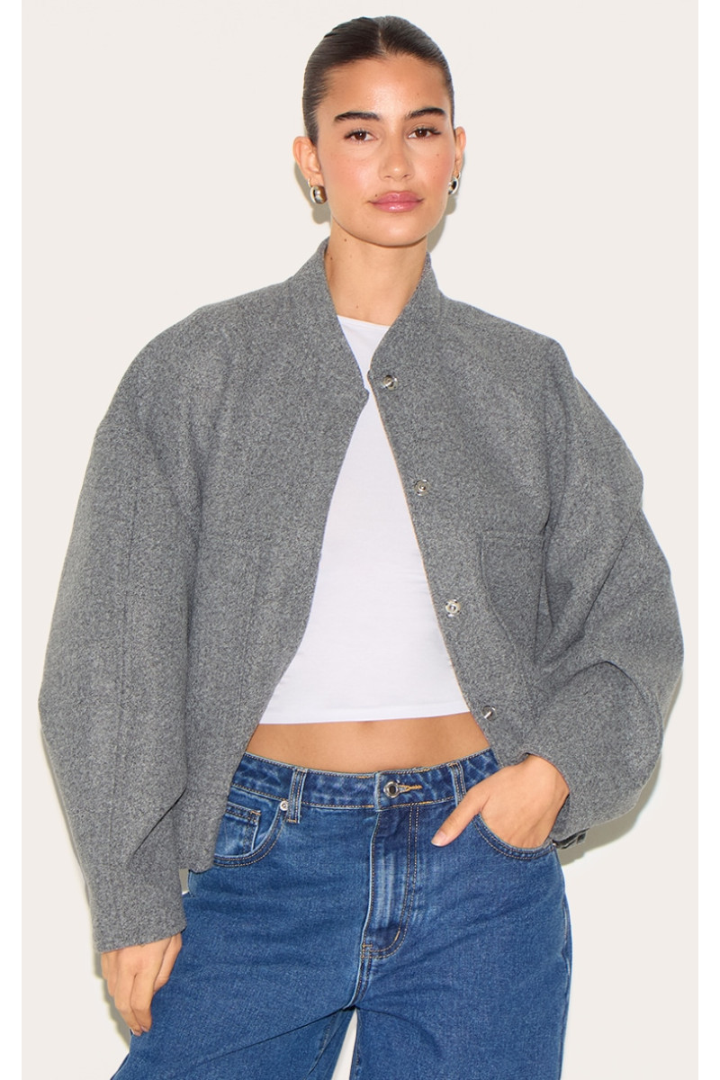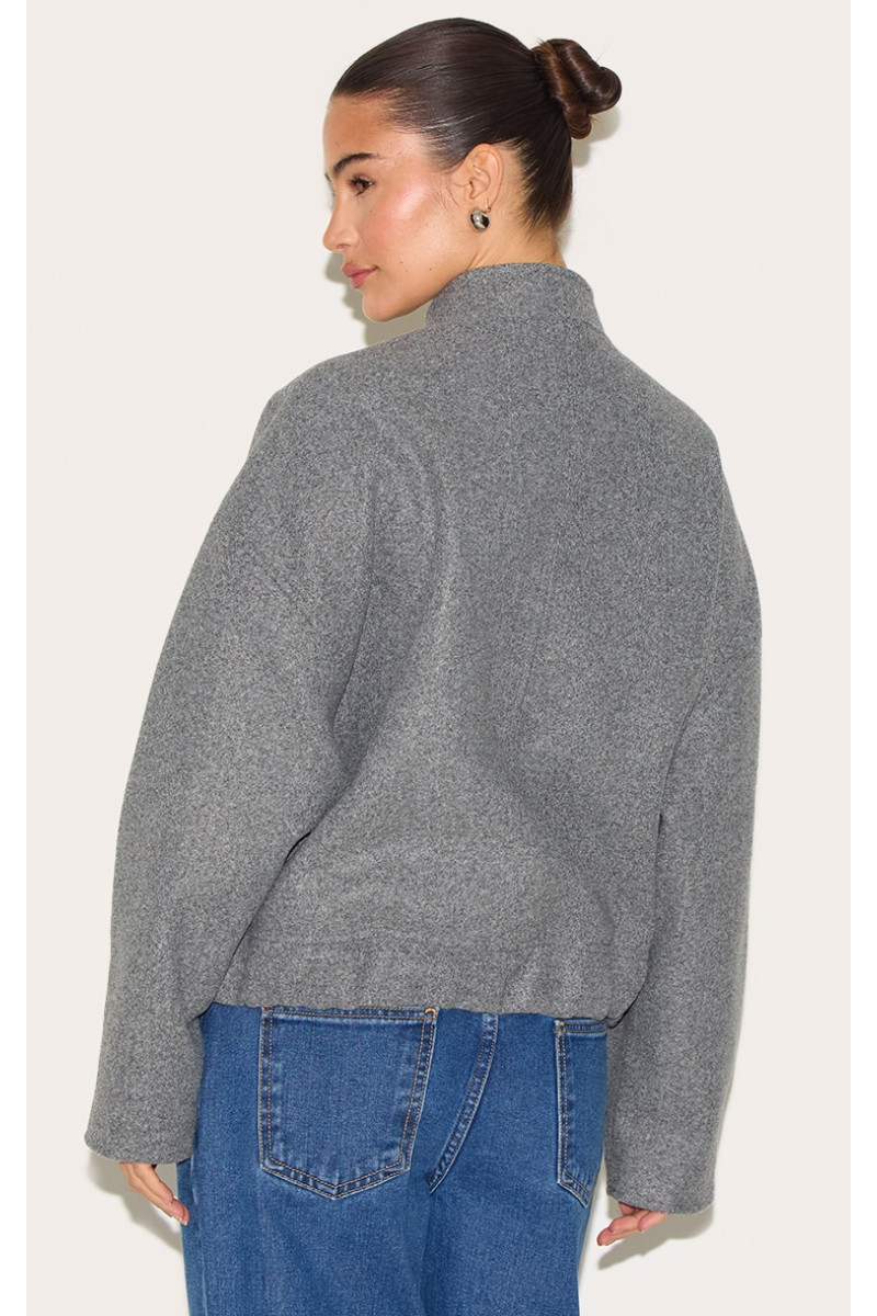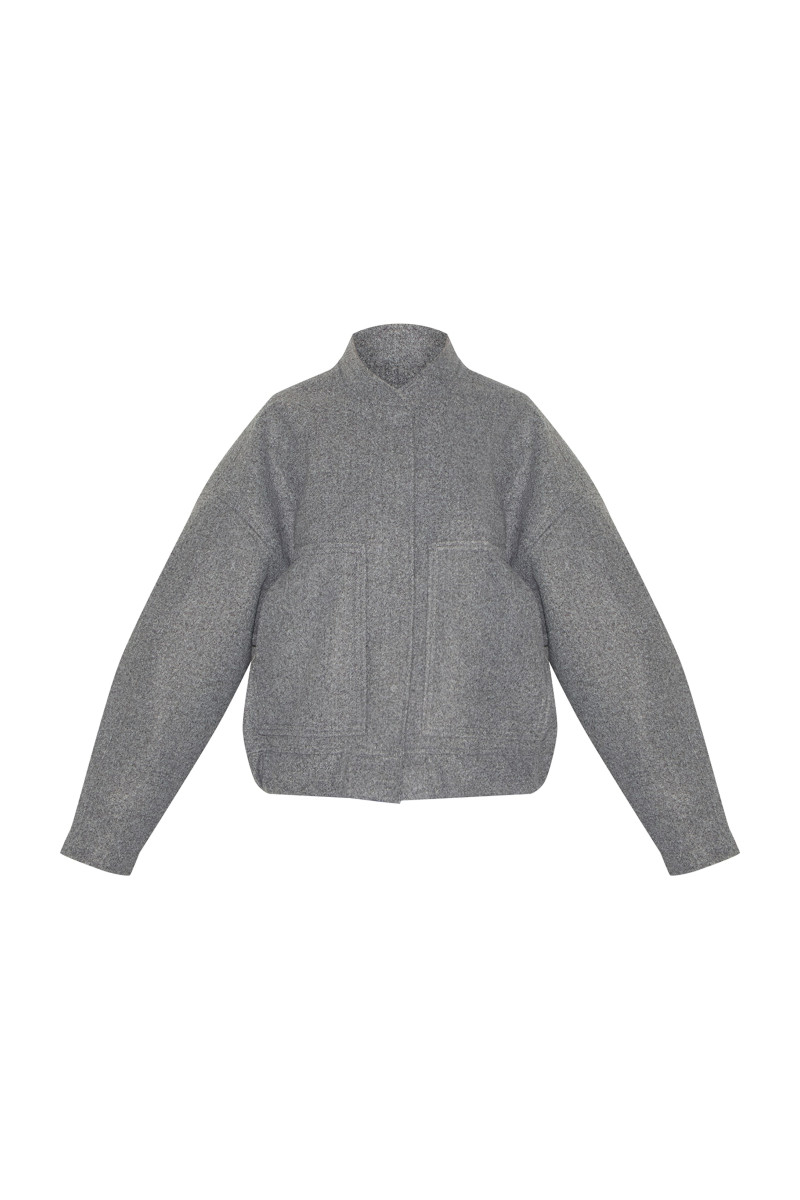 Сіра вовняка виглядає довгим курткою бомбардувальника