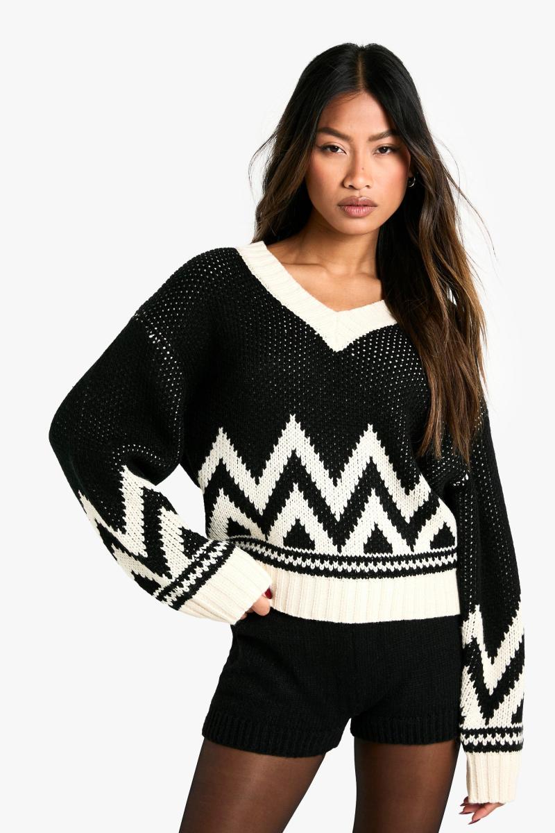 Трикотажний джемпер із V-подібним вирізом і ялинкою