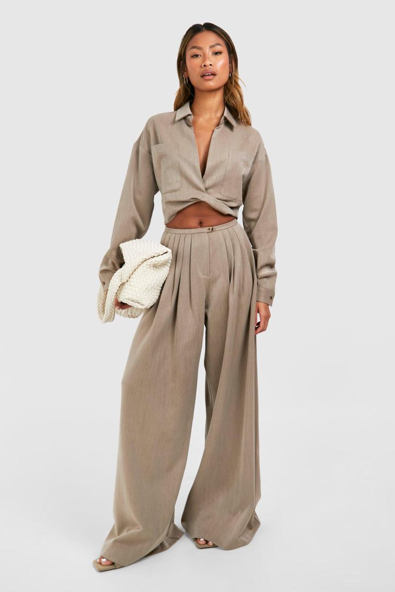 Отримайте нові широкі штани з найактуальнішим стилем сезону – широкими брюками. Витягніть свій силует завдяки привабливій формі широких брюк із високою талією. Зробіть команду із заправленою футболкою з лозунгом і кросівками для спортивної розкоші або ідеально доповніть піджак і туфлі на підборах для наступної події. Настав час оновити свій повсякденний одяг парою штанів палаццо.