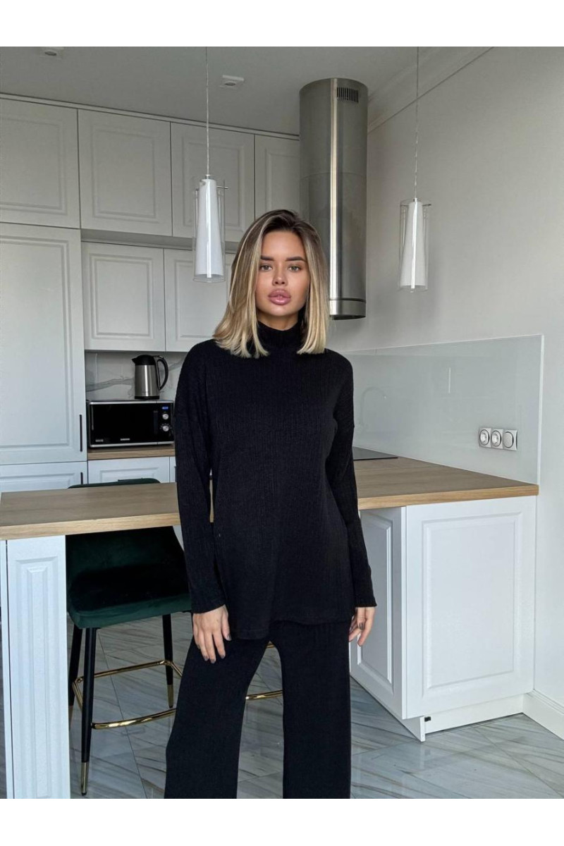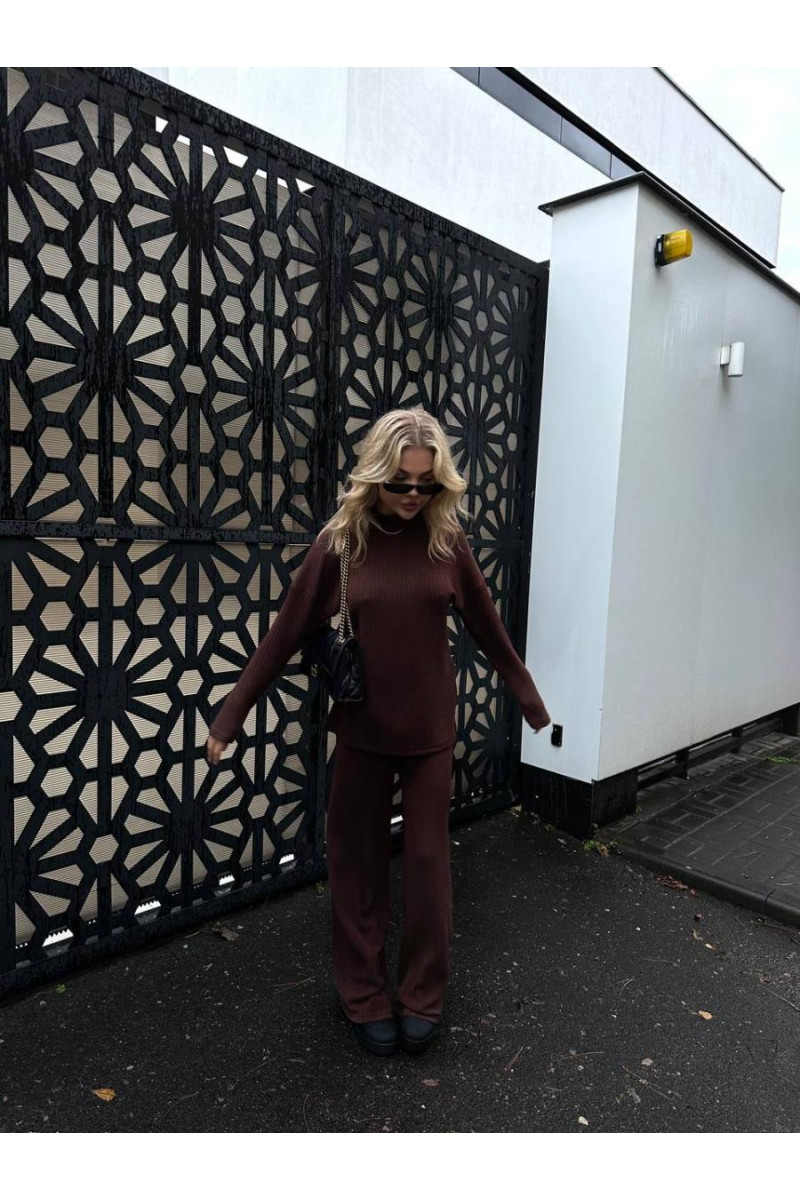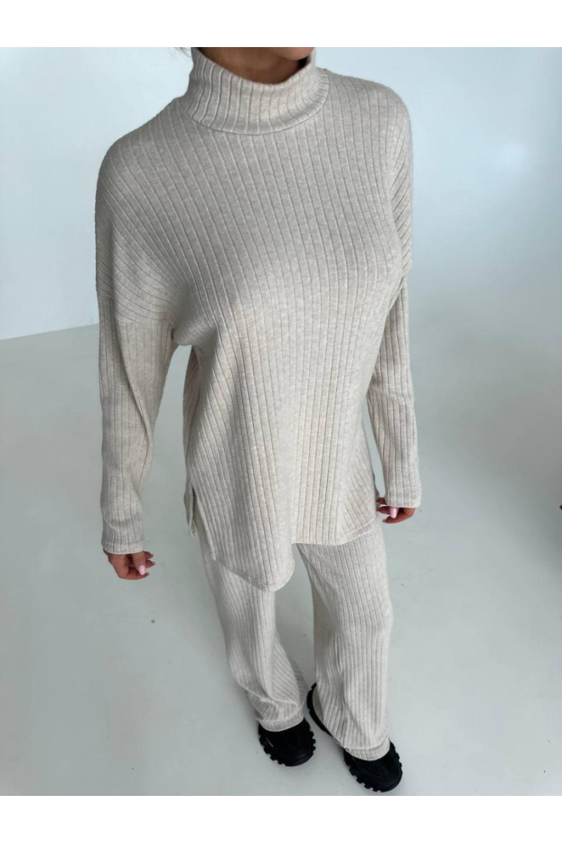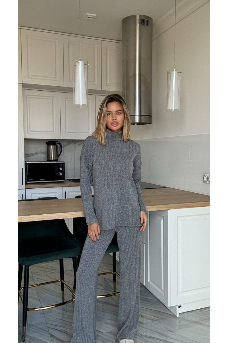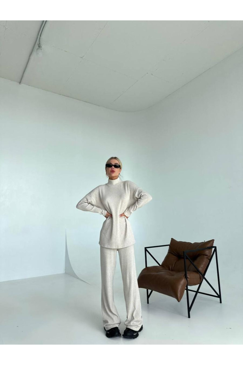 Модель Жіночий костюм Розмірний ряд 42-44;46-48;50-52 Кольори сірий, беж, шоколад та чорний Костюм з вільними по крою брюками, у талії передбачена еластична вставка для комфорту