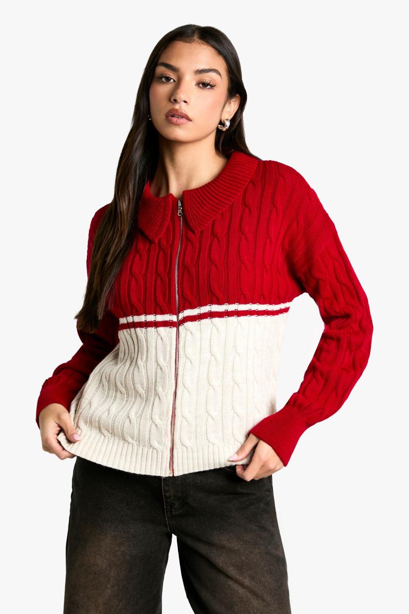 Кучерява в’язана деталь кабелю Zip через комірний джемпер