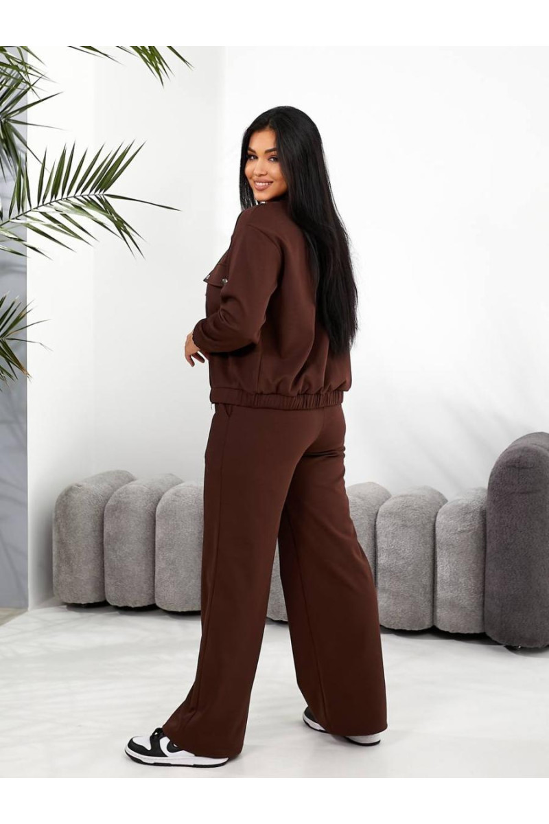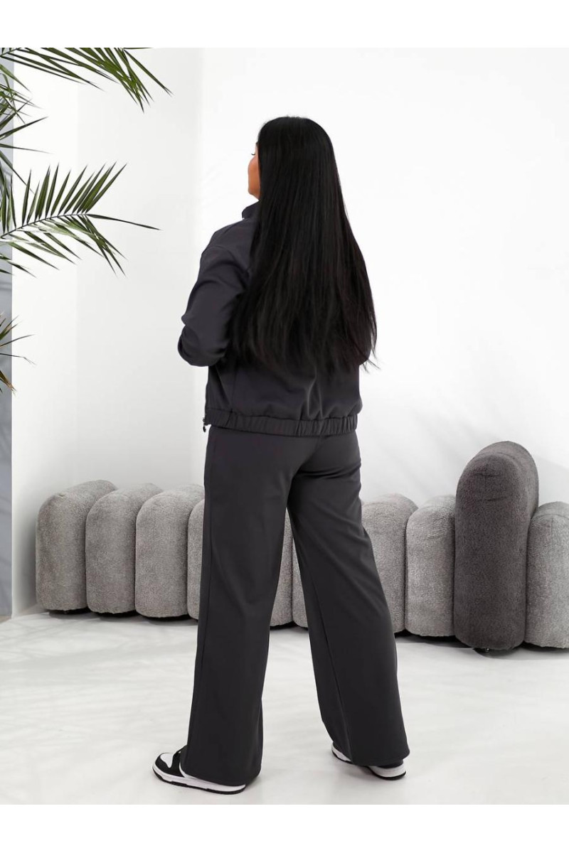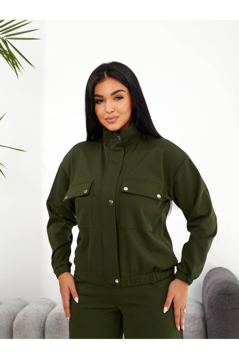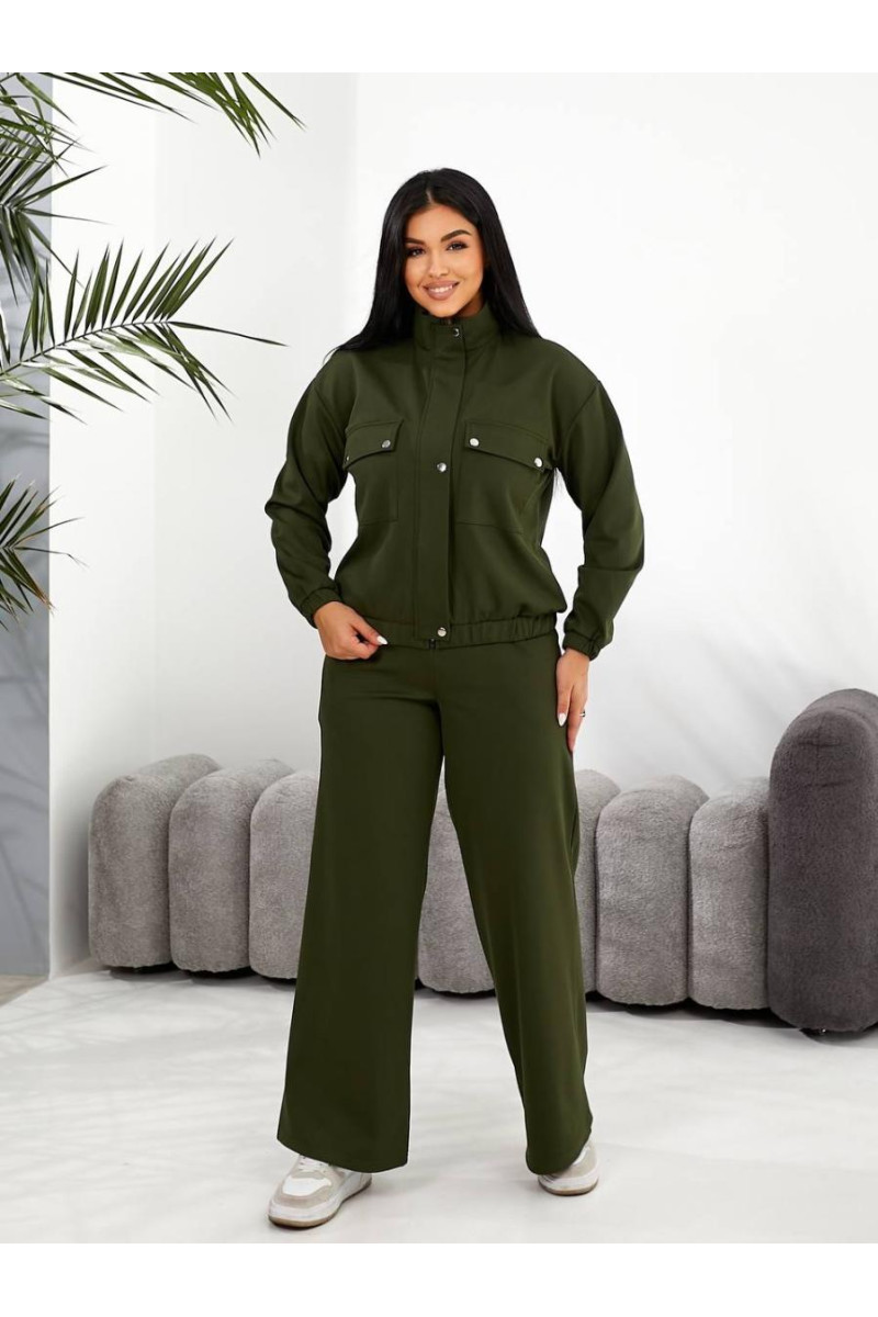 МОДЕЛЬ ‼️МІЖСЕЗОННИЙ ТРЕНДОВИЙ КОСТЮМ з бомбером та прямими брюками. ▪️Бомбер вільного крою має довгий рукав з подовженою лінією плеча по низу манжет на резинці. Комірець стійка застібка на блискавці і планка на кнопках. Має накладні нагрудні кишені з клапаном. По низу бомбера резинка. ▪️Брюки прямого крою, високої посадки, втачний пояс з широкою резинкою і шнурком для зручного фіксування на талії. В бокових швах косі кишені. Ідеально сидять на фігурі і гарна посадка